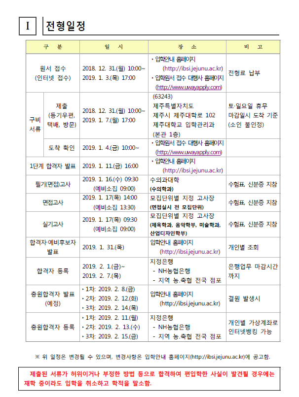 [2019학년도] 제주대학교 최종 모집요강 안내