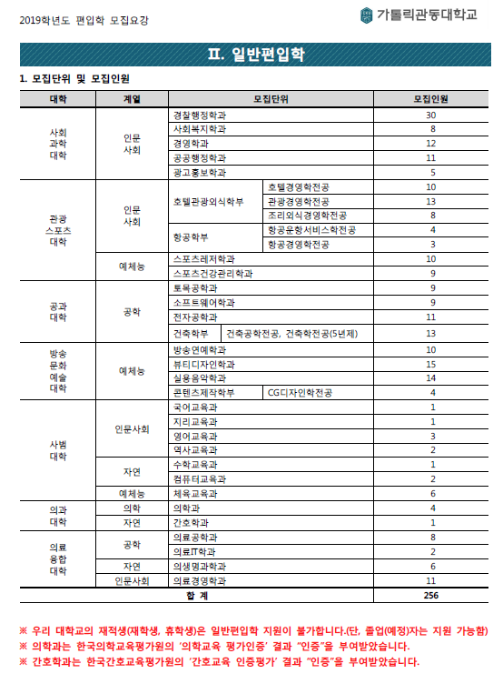 [2019학년도] 가톨릭 관동대학교 최종 모집요강 안내