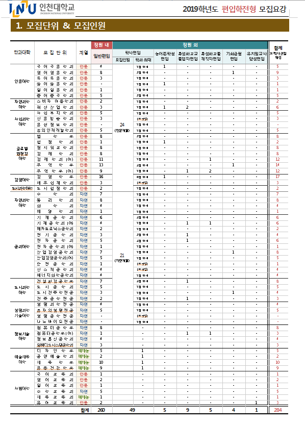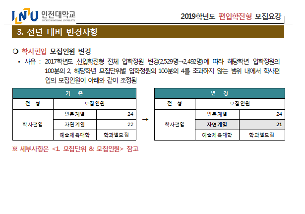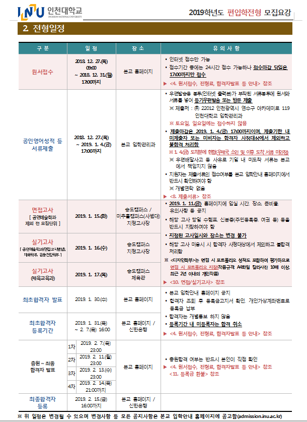 [2019학년도] 인천대학교 최종 모집요강 안내