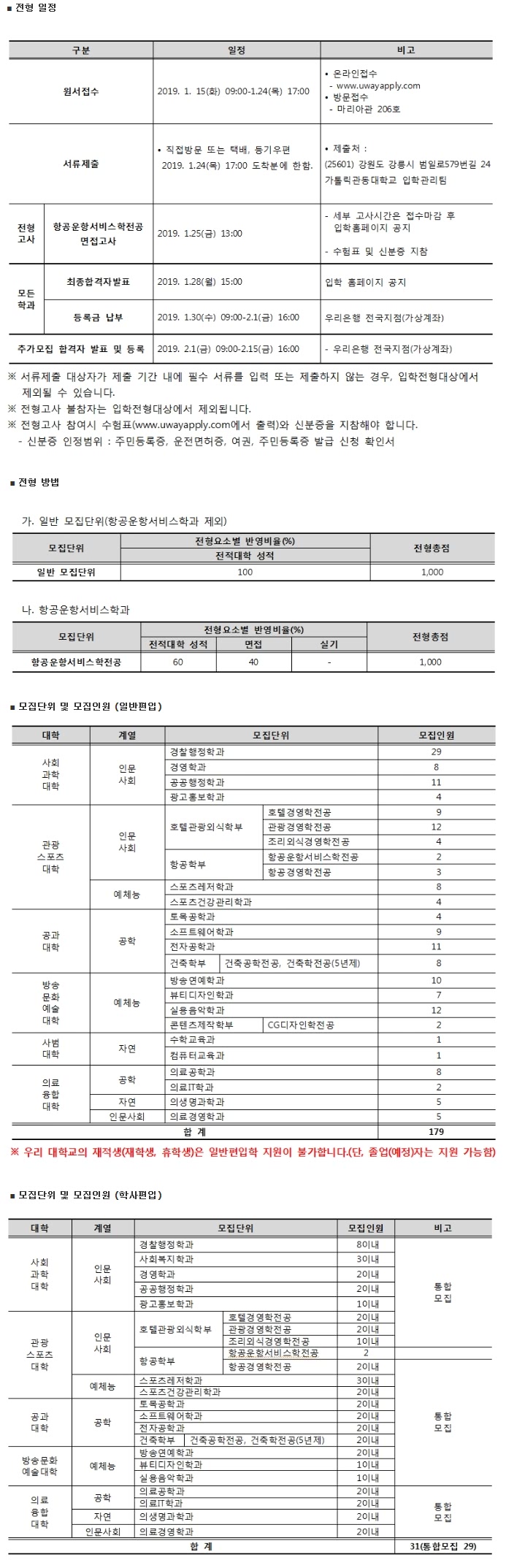 [2019학년도] 가톨릭관동대학교 추가 모집요강입니다.