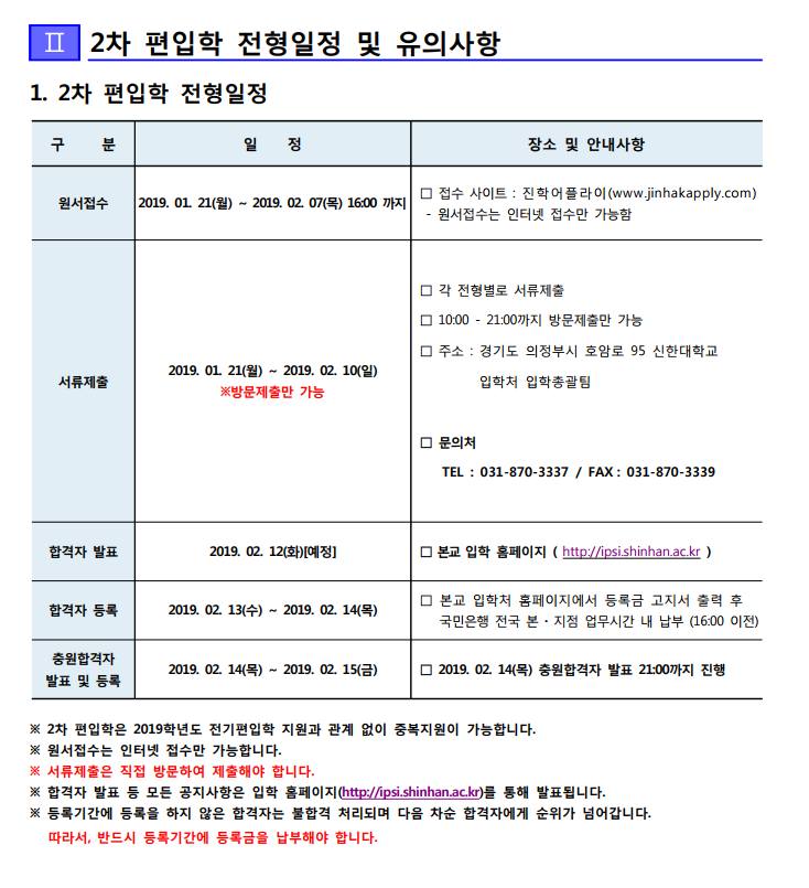 [2019학년도] 신한대학교 추가 모집요강입니다.