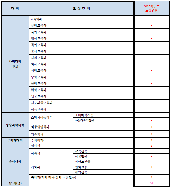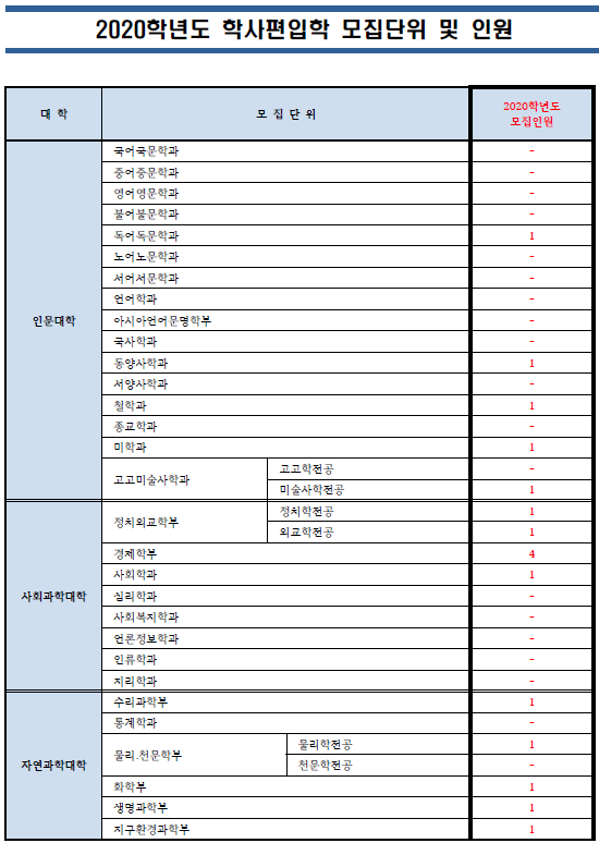 글제목 [2020학년도] 서울대학교 편입학 모집인원 및 변경사항 안내입니다.