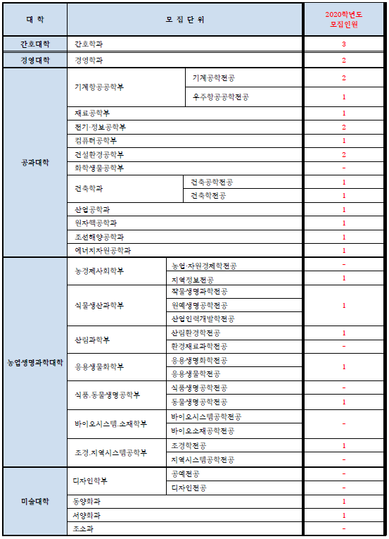 2326 모집요강 [2020 학년도] 전남대학교 편입학전형 기본계획 공유드립니다 첨부파일    2019-07-02