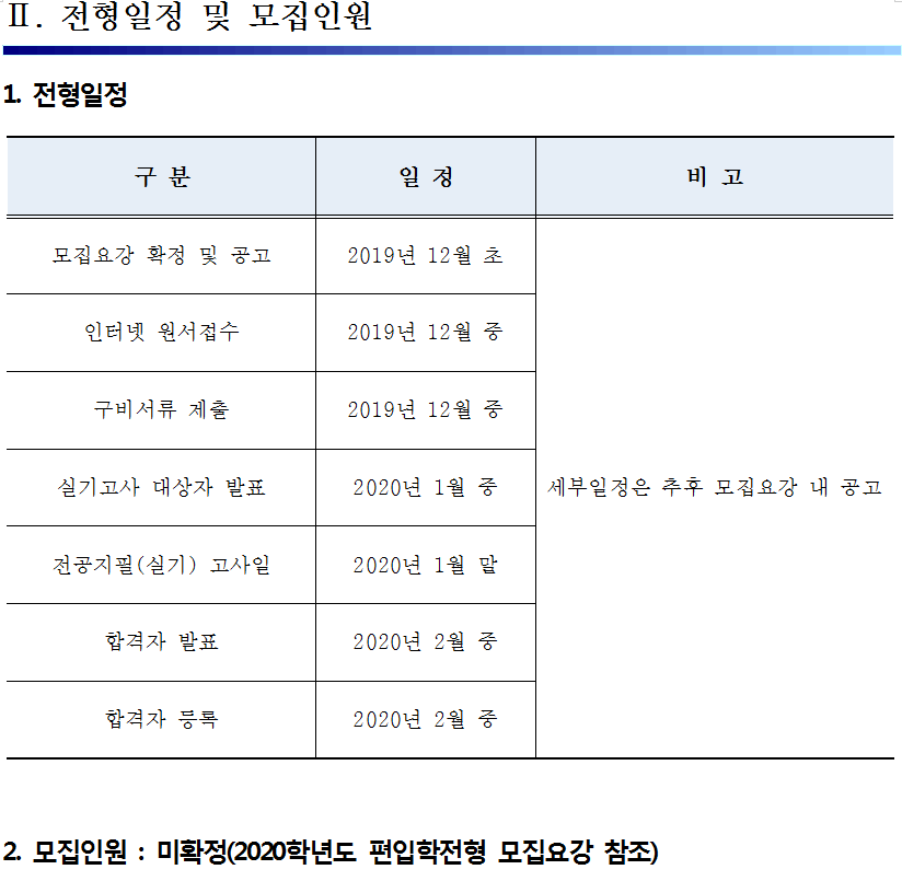[2020 학년도] 전남대학교 편입학전형 기본계획 공유드립니다