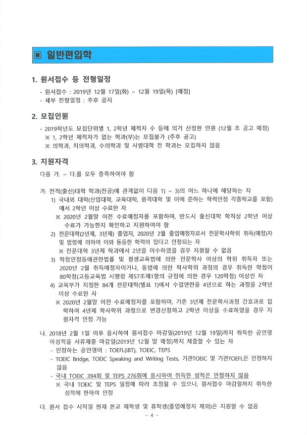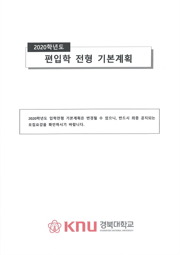 글제목 [2020 학년도] 경북대학교 편입학전형 기본계획 공유드립니다