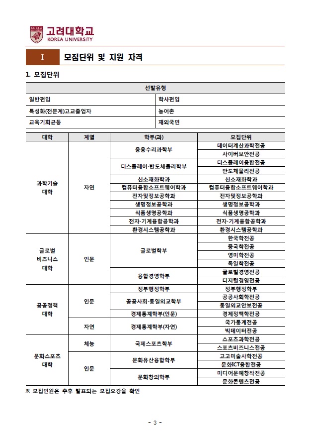 글제목 [2020학년도] 고려대학교(세종) 2020학년도 편입학전형 기본계획 안내