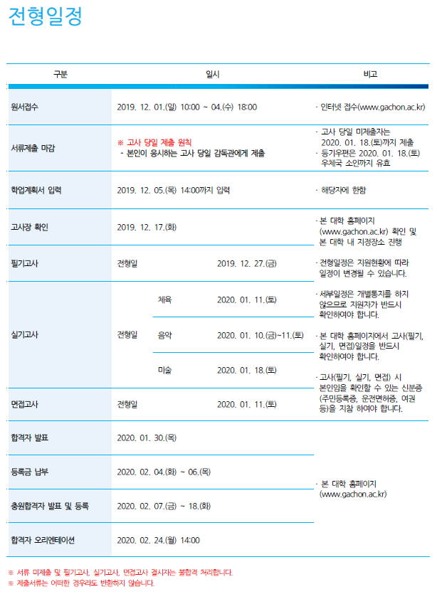 글제목 [2020학년도] 2020학년도 가천대학교 편입학 기본계획 안내