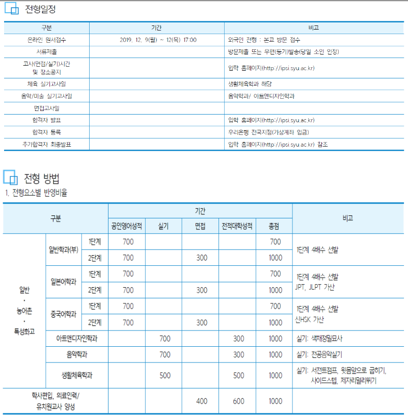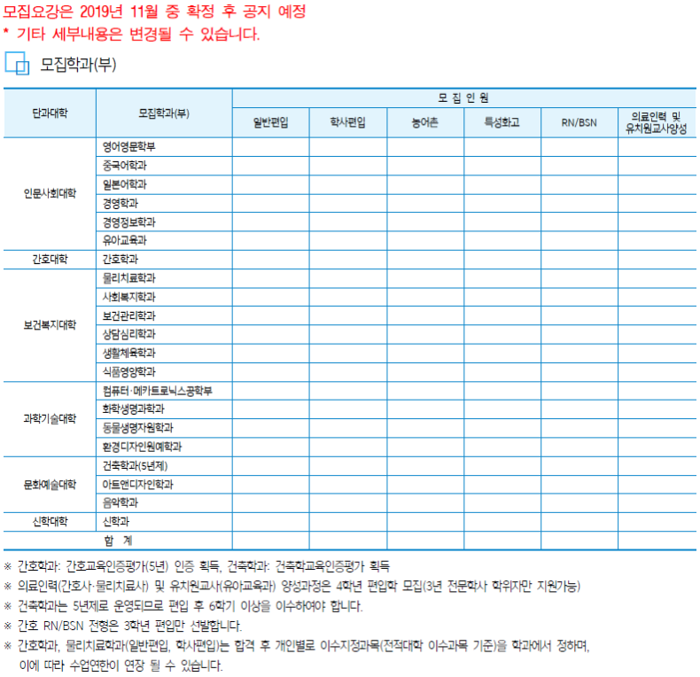 [2020학년도] 2020학년도 삼육대학교 편입학 기본계획 안내