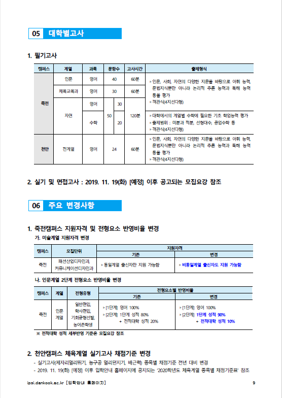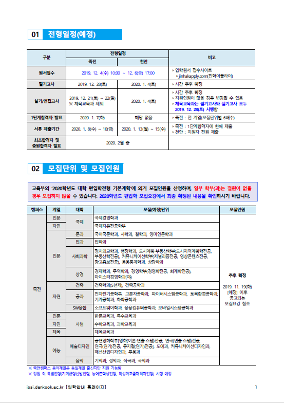 | 글제목 | [2020학년도] 단국대학교 2020학년도 편입학전형 기본계획 안내 | |||||