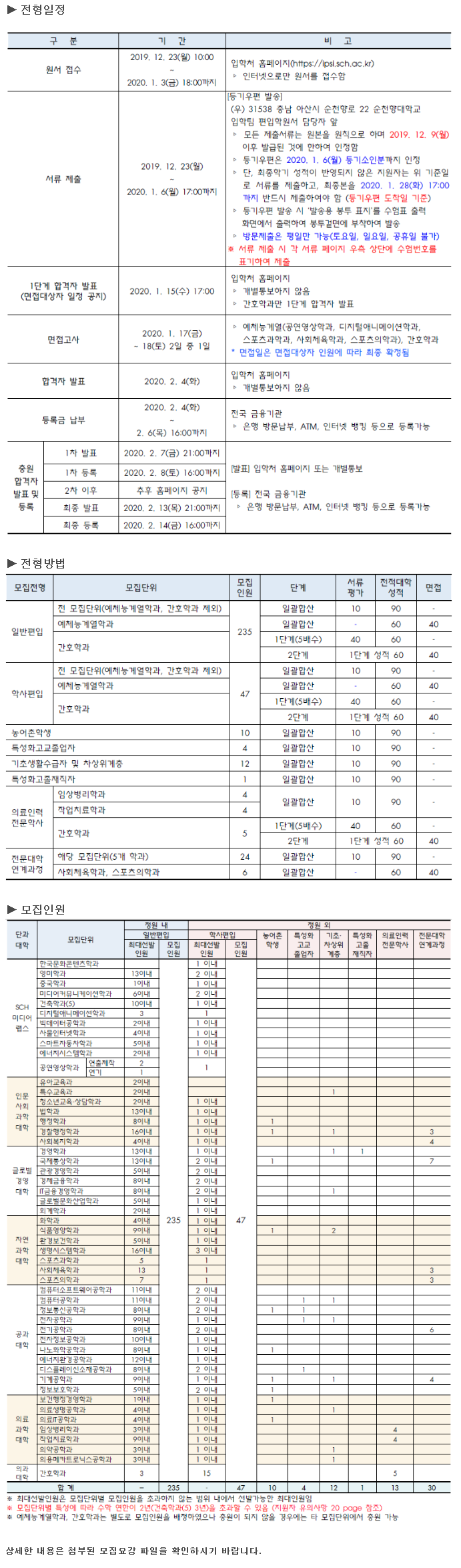 [2020학년도] 순천향대학교 최종 모집요강 공유드립니다.