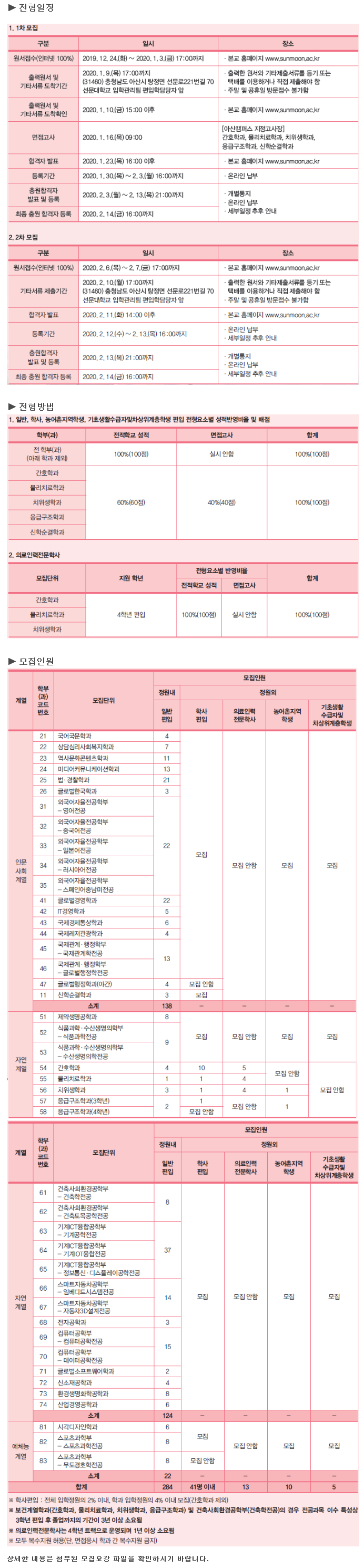 2377 모집요강 [2020학년도] 순천향대학교 최종 모집요강 공유드립니다.    2019-12-02