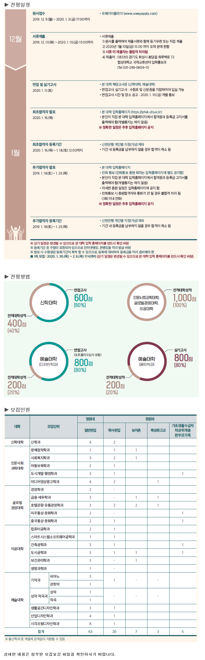 글제목 [2020학년도] 협성대학교 최종 모집요강 공유드립니다.