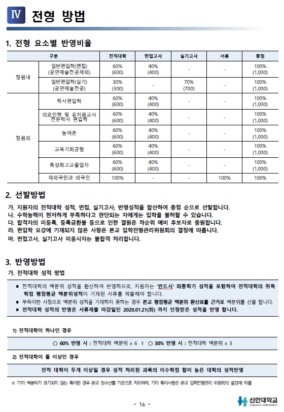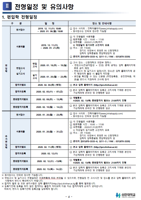2020학년도 신한대학교 최종 모집 요강 안내