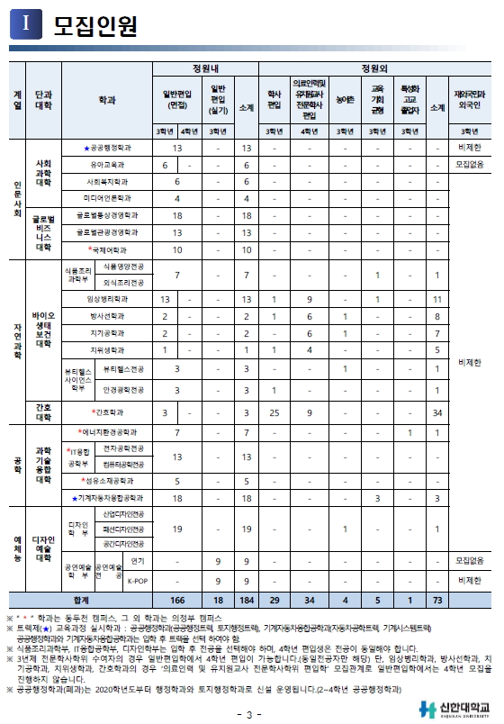 글제목 [2020학년도] 신한대학교 최종 모집 요강 안내