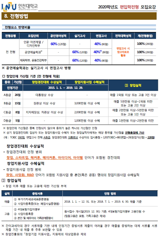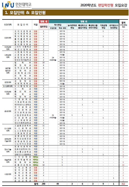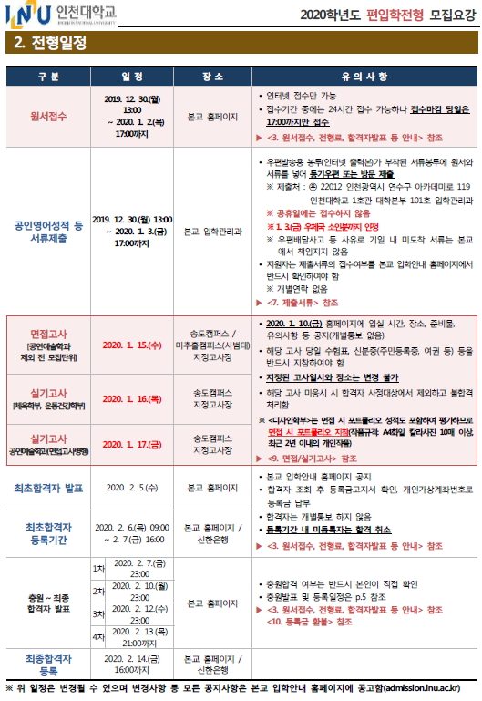 2020학년도 인천대학교 최종 모집 요강 안내