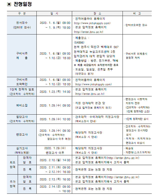 [2020학년도] 전북대학교 최종 모집 요강 안내