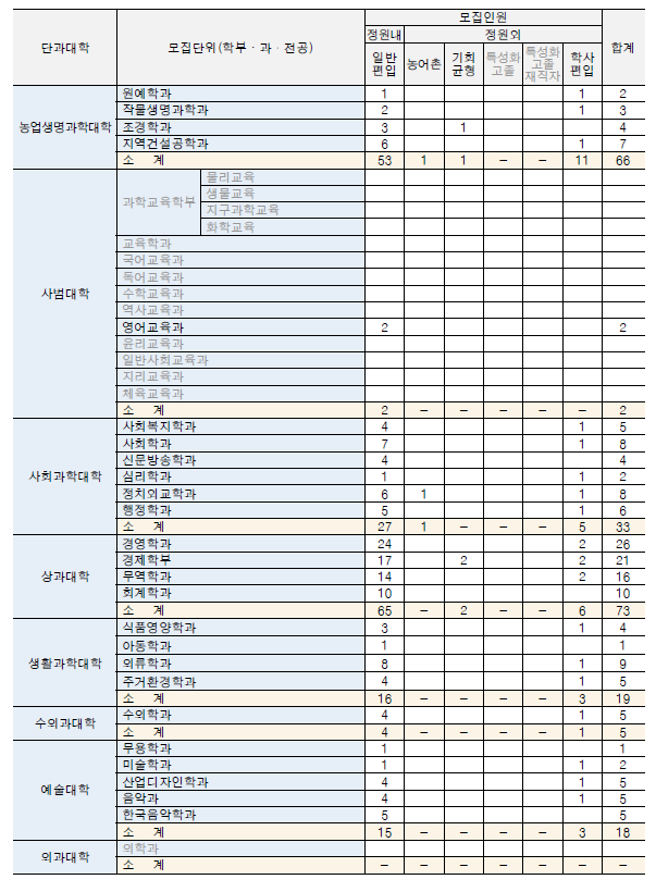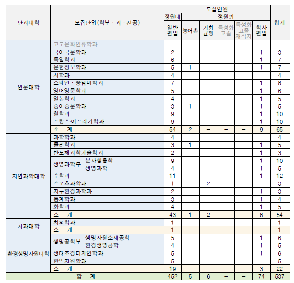 [2020학년도] 충남대학교 최종 모집 요강 안내