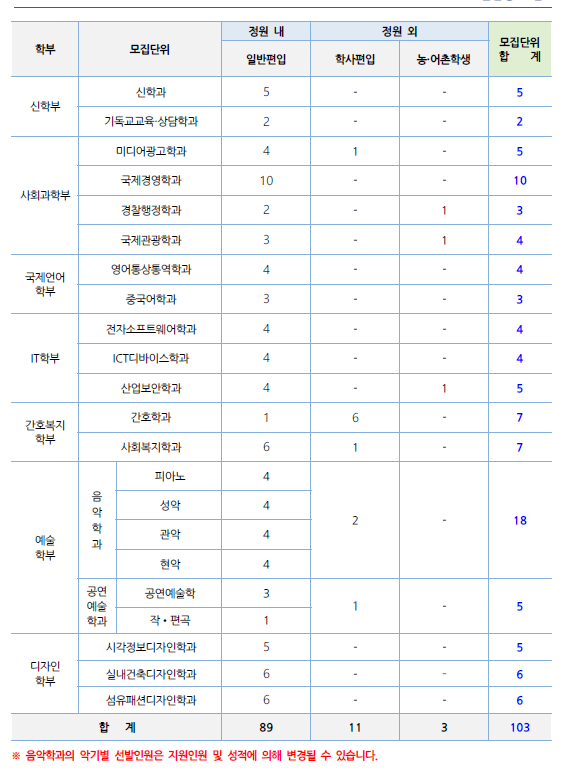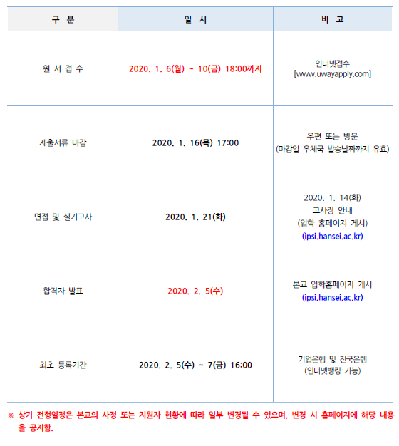 글제목 [2020학년도] 한세대학교 최종 모집 요강 안내