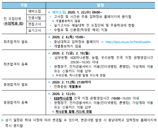 [2020학년도] 충남대학교 최종 모집 요강 안내