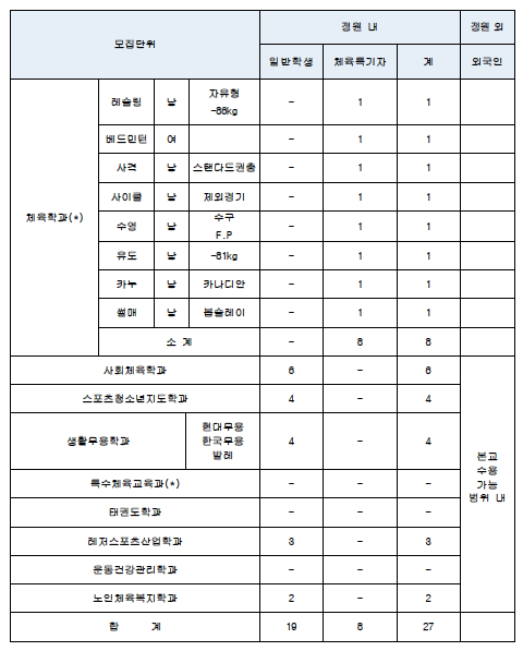 글제목 [2020학년도] 한국체육대학교 최종 모집 요강 안내