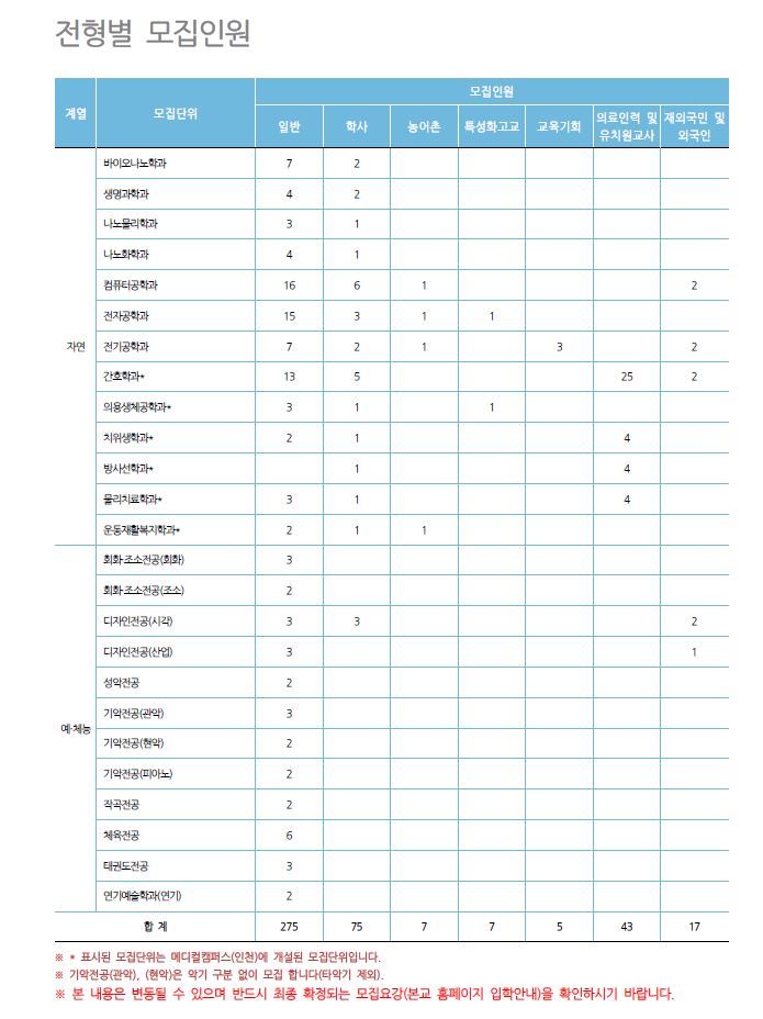 가천대학교 편입학 예정 모집인원 및 일정 안내드립니다.