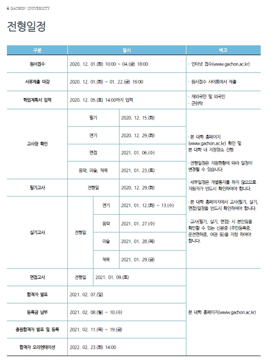 [2021학년도] 가천대학교 편입학 예정 모집인원 및 일정 안내