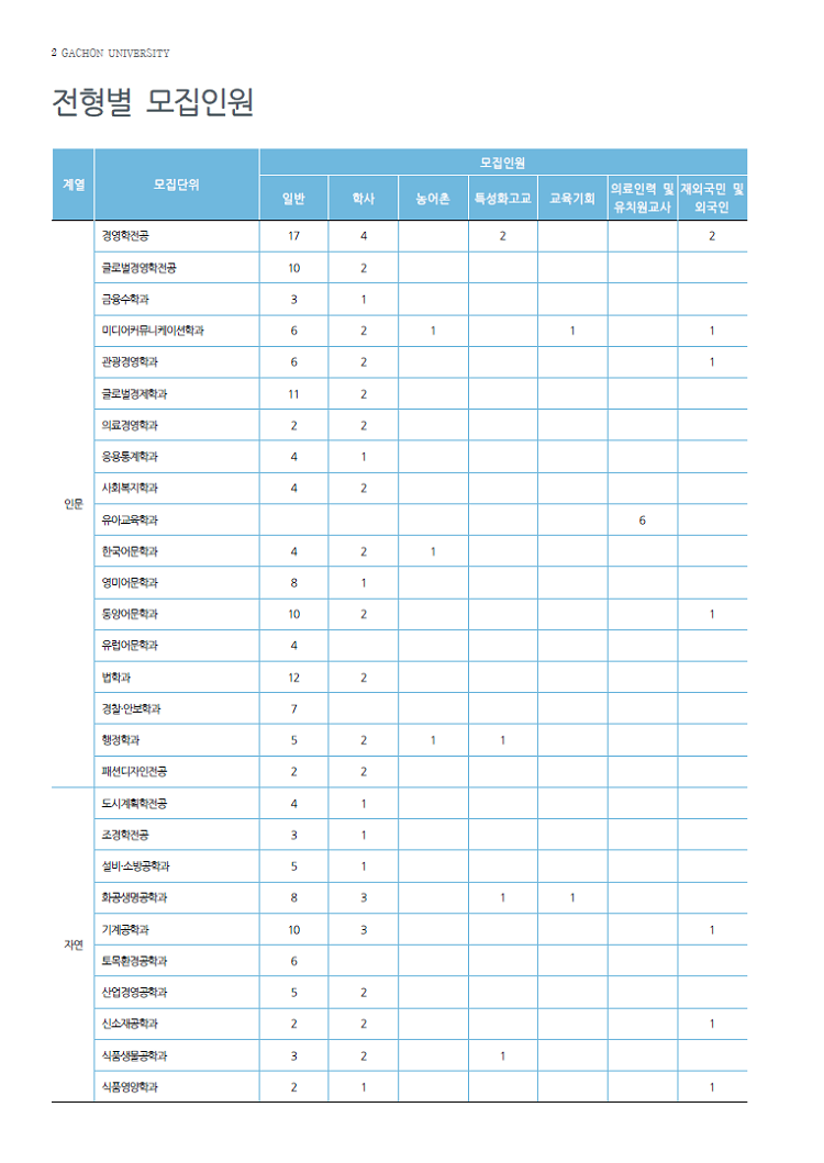 [2021학년도] 가천대학교 편입학 모집요강