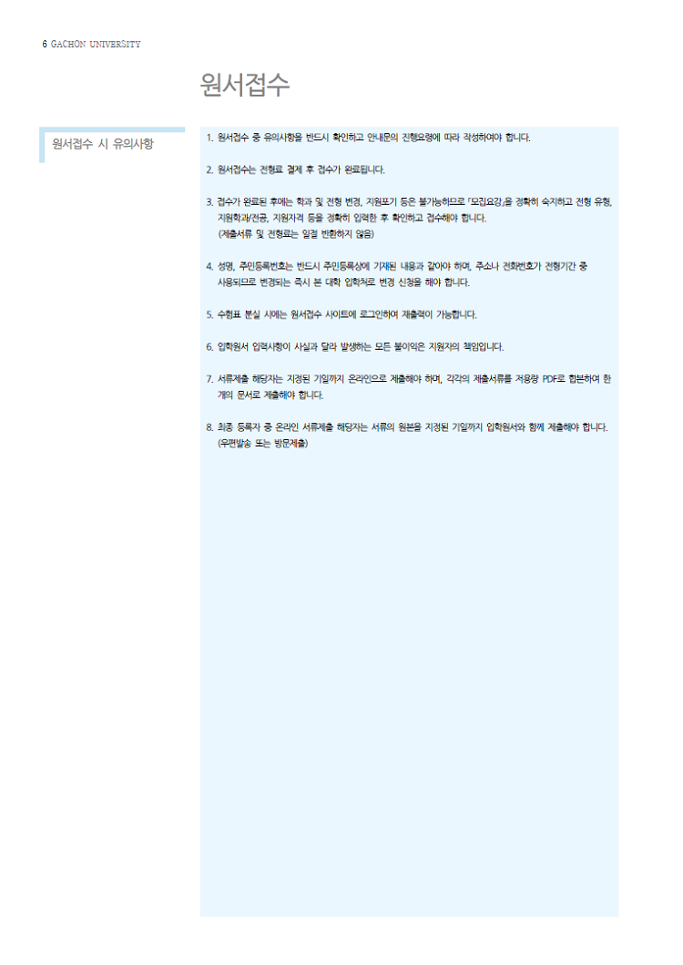 ▶ 가천대학교 입학처 홈페이지