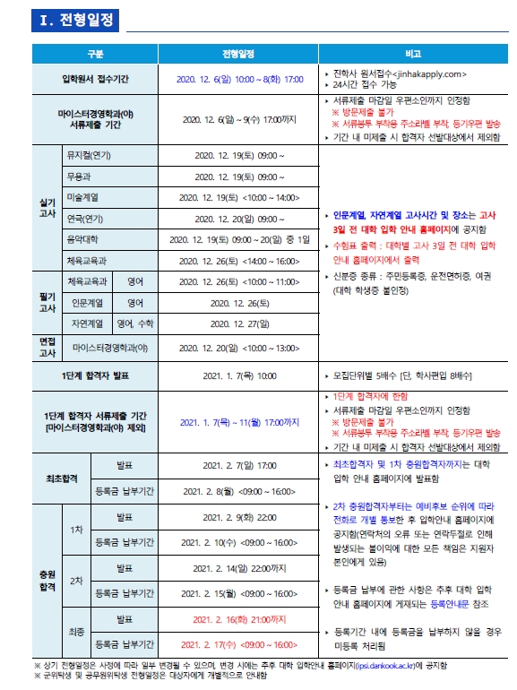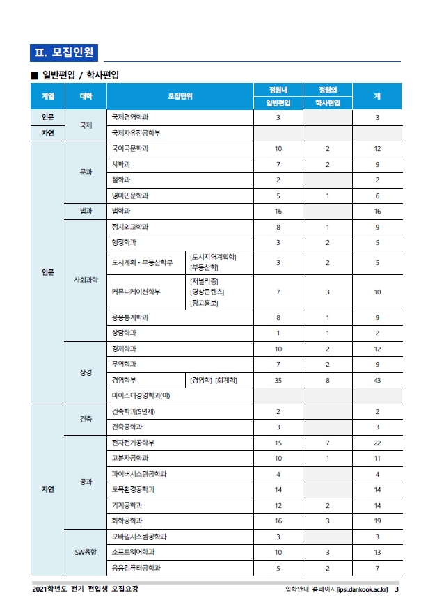 [2021학년도] 단국대학교(죽전) 최종 모집요강 입니다.