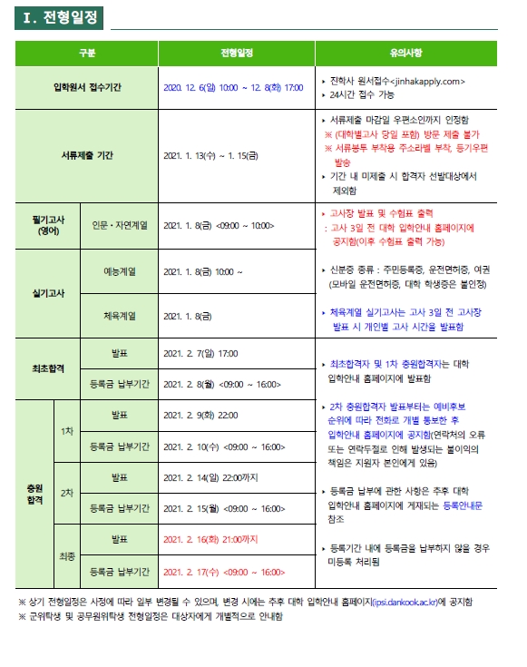 [2021학년도] 단국대학교(천안) 최종 모집요강 입니다.
