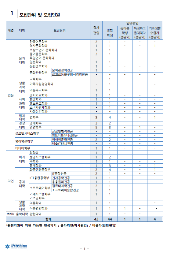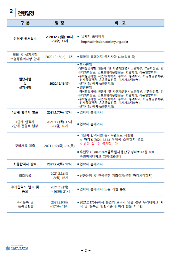 [2021학년도] 숙명여자대학교 최종 모집요강 입니다.