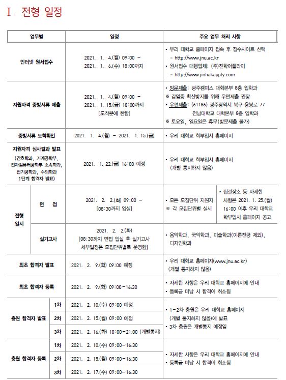 [2021학년도] 전남대학교 최종 모집요강 입니다.