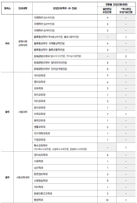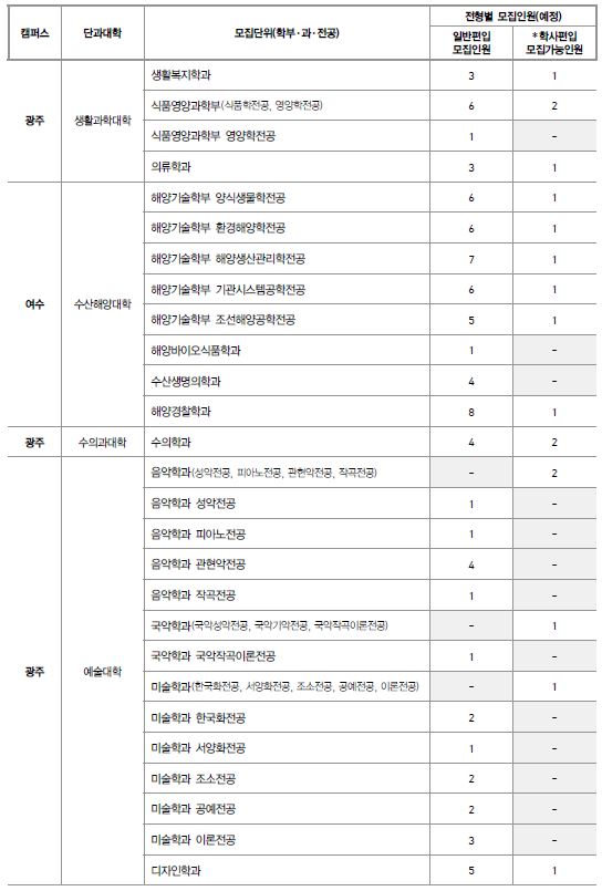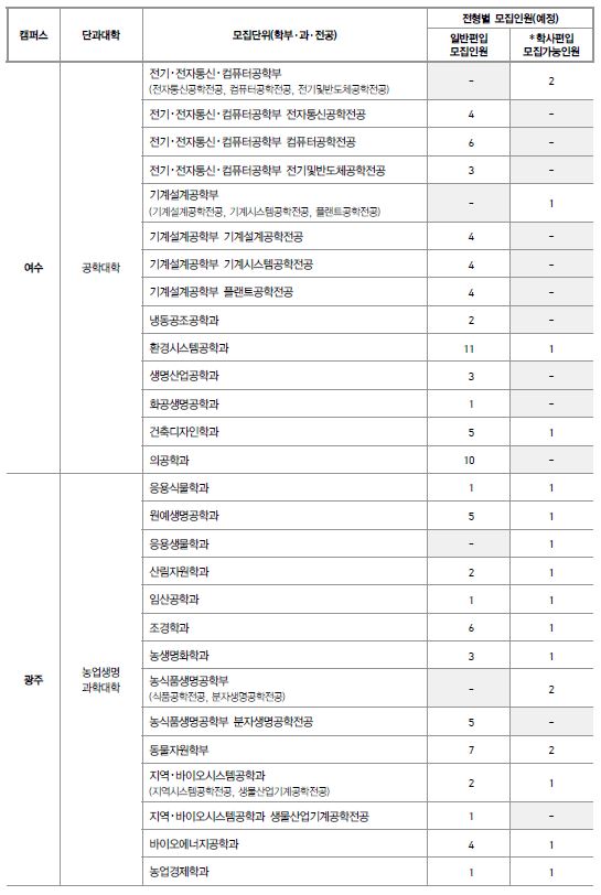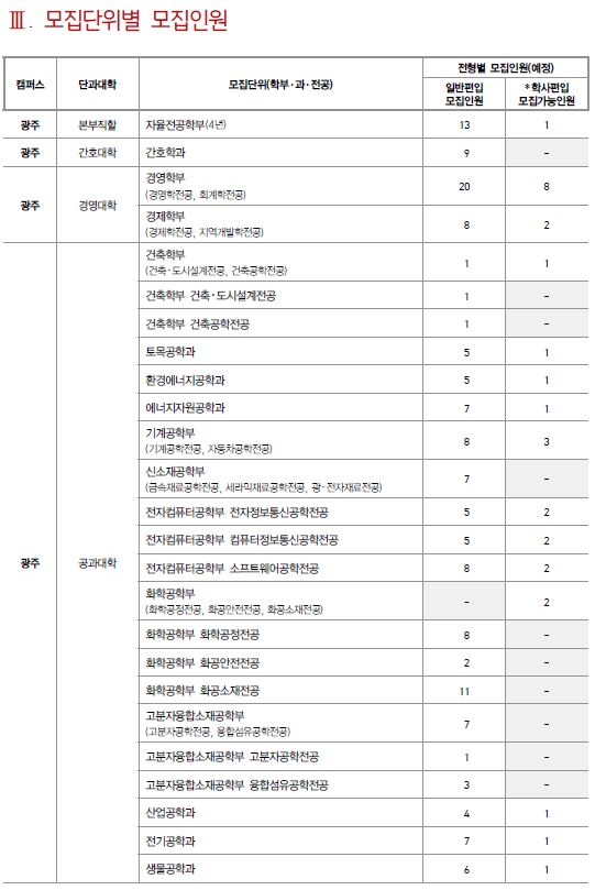 전남대학교 최종 모집요강 입니다.