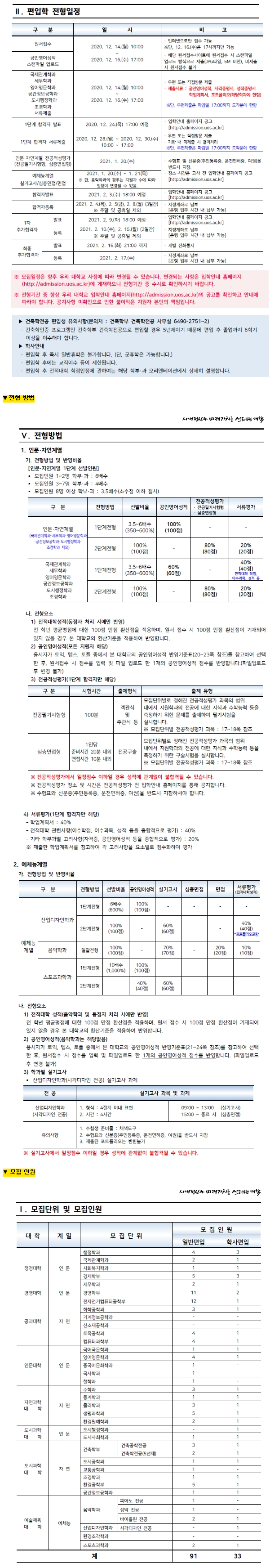 [2021학년도] 서울시립대학교 최종 모집요강