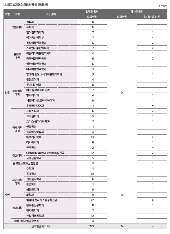 한국외국어대학교 최종 모집요강 입니다.