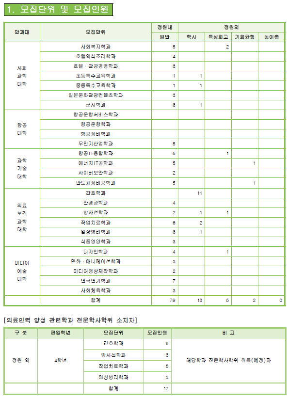 [2021학년도] 서경대학교 편입학 모집 주요사항 안내