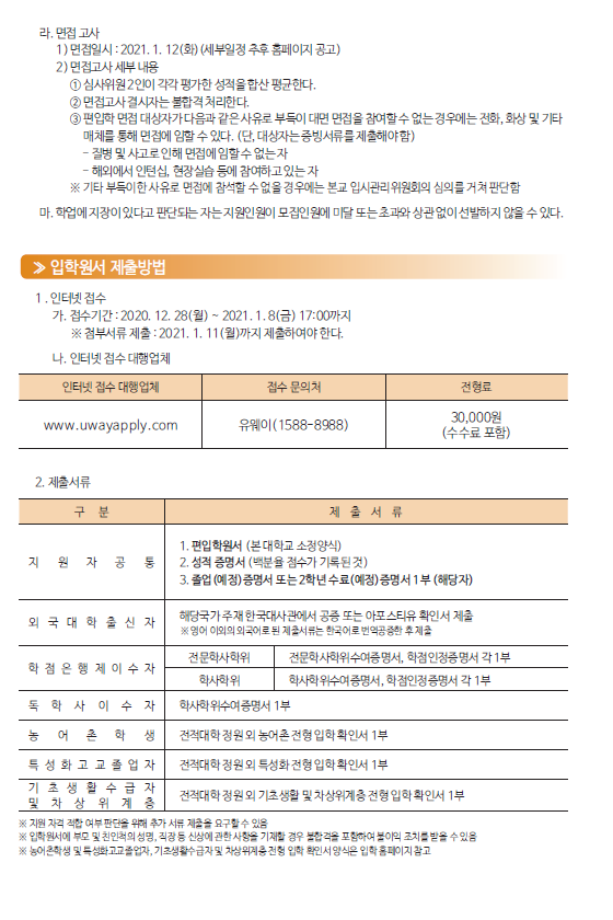 [2021학년도] 아주대학교 편입학 주요사항 및 일정 안내