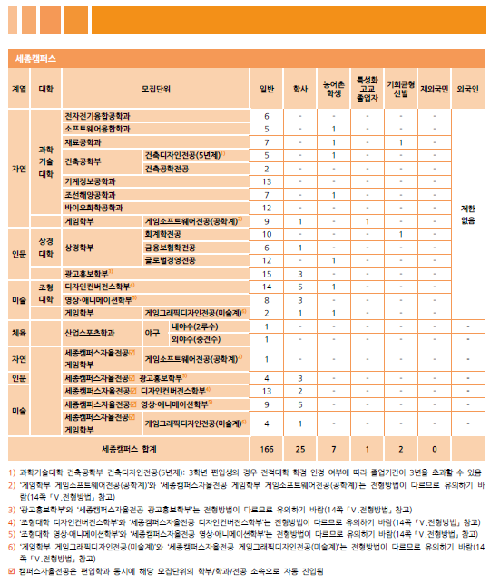 [2021학년도] 세종대학교 최종 모집요강