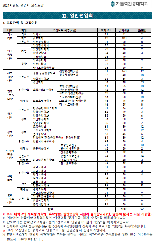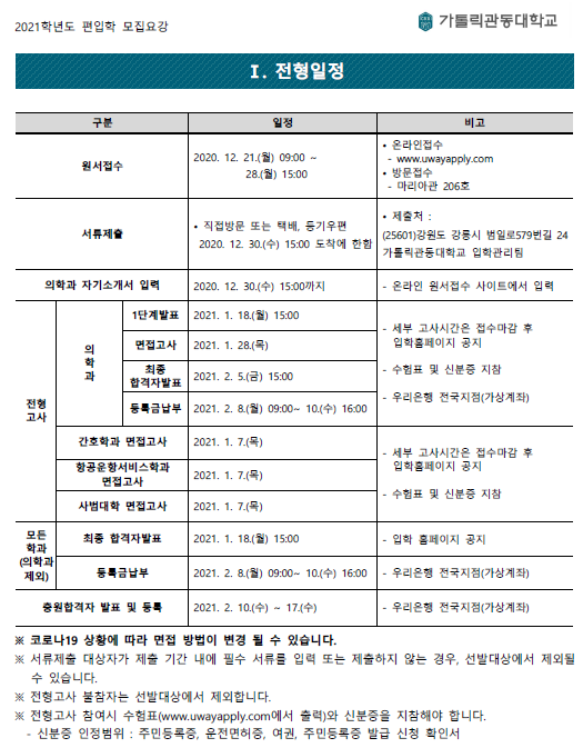 [2021학년도] 가톨릭관동대학교 최종 모집요강