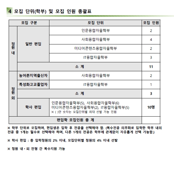 ▼ 모집 단위(학부) 및 모집 인원 ▼