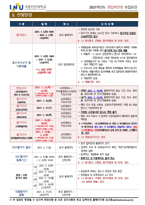 [2021학년도] 인천대학교 최종 모집요강 입니다.