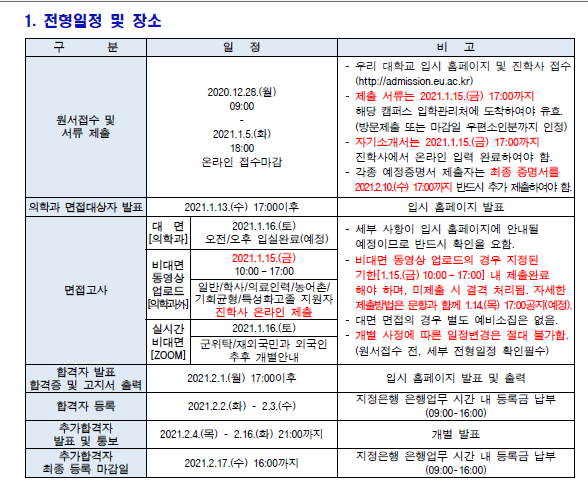 글제목 [2021학년도] 을지대학교 편입학 최종 모집요강