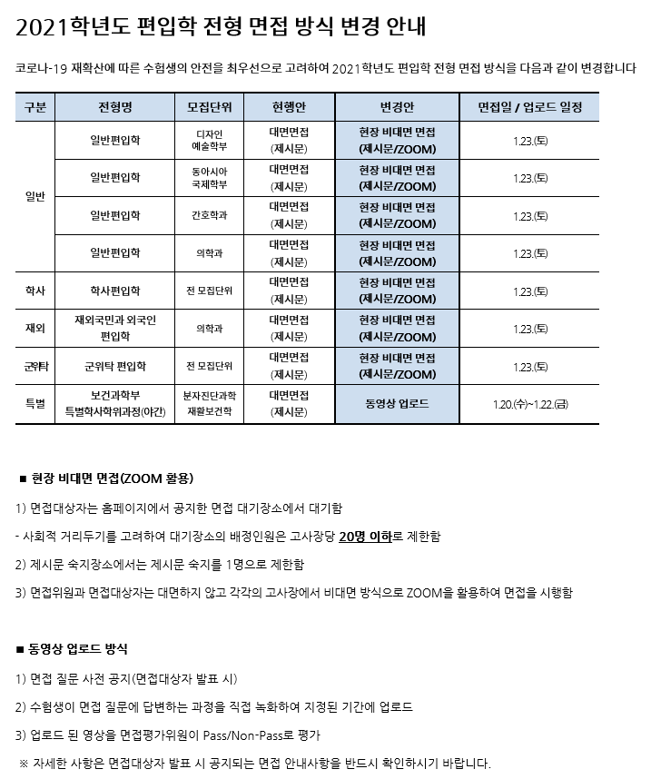 [2021학년도] 연세대학교(미래) 면접시험 방식 변경 안내