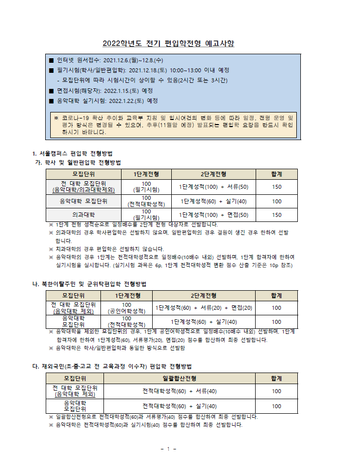 ♣ 연세대학교 편입학 예고사항: 2022학년도 편입학 전형 예고사항.zip