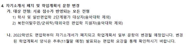 [ 연세대학교 자기소개서 폐지 및 학업계획서 문항 변경 ]