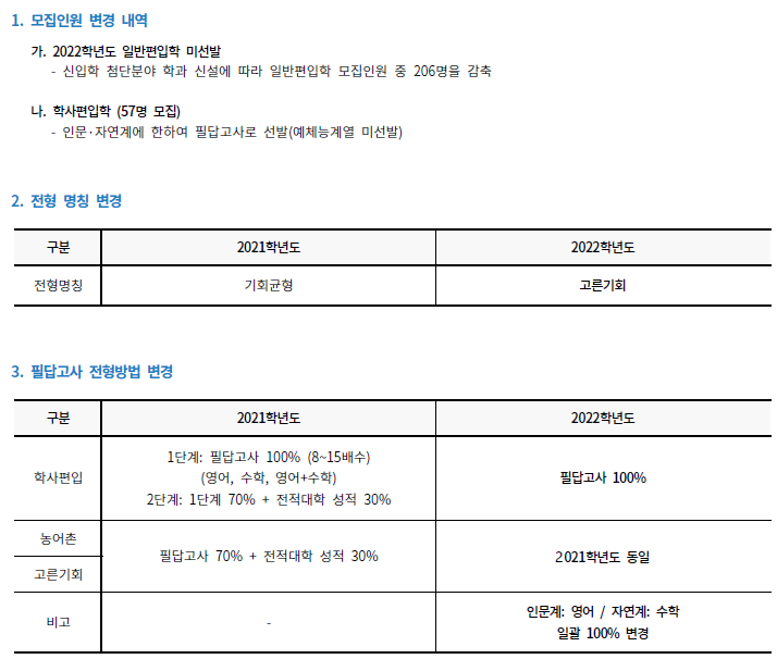 [2022학년도] 국민대 편입학모집 전형 방법 변경 안내