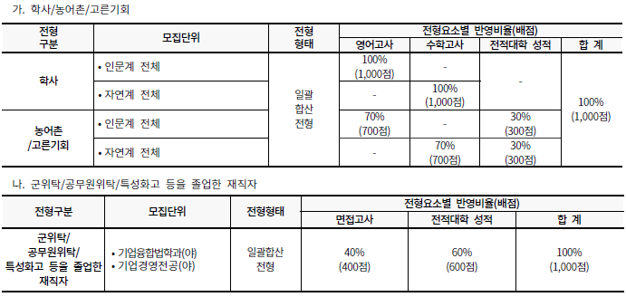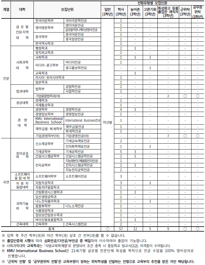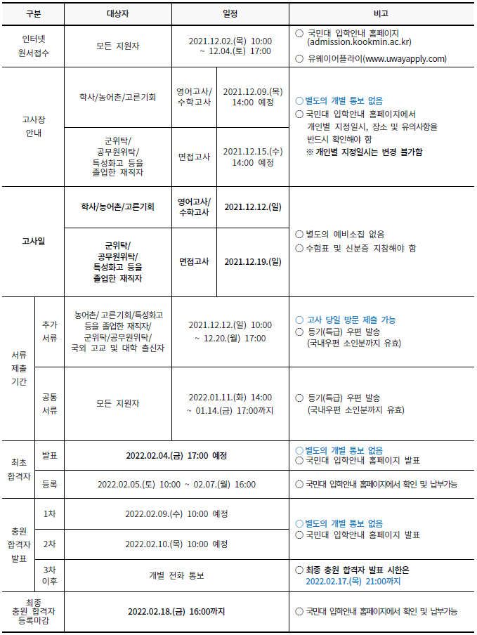 [2022학년도] 국민대학교 편입학 최종 모집요강