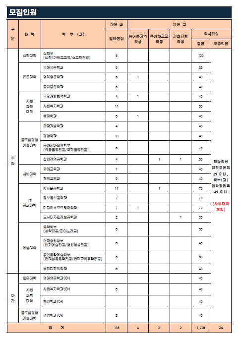 [2022학년도] 전남대학교 편입학 모집단위별 모집인원(안)
