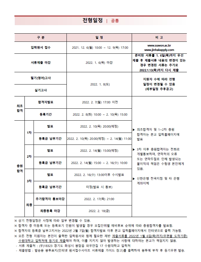 [2022학년도] 아주대학교 편입학 모집요강 사전공지