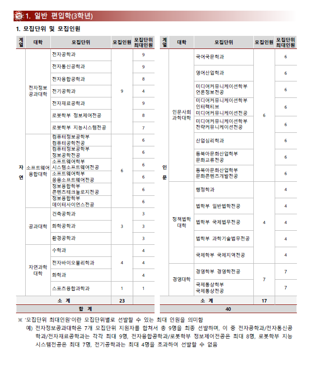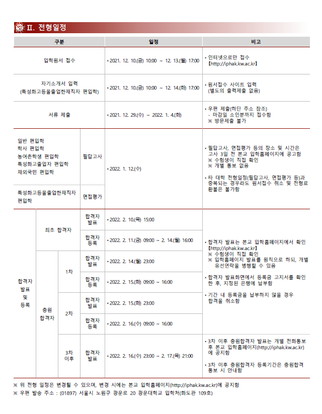 [2022학년도] 광운대학교 편입학 모집요강
